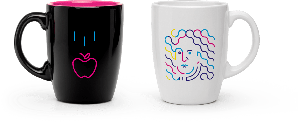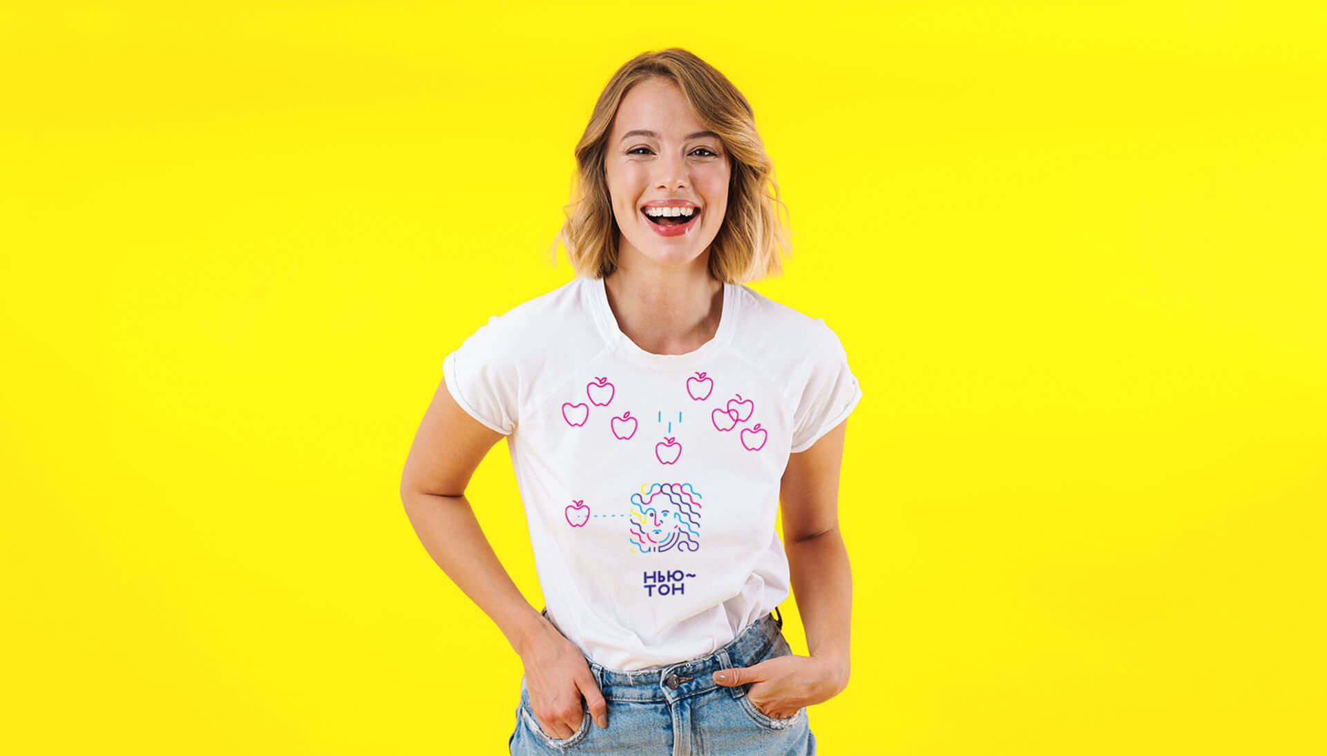 Используя образ Ньютона, мы не могли забыть про знаменитое яблоко! Оно стало дополнительным ключевым изображением фирменного стиля.