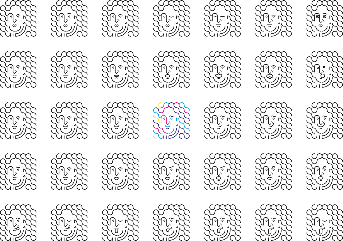 У нас получился вариативный образ со множеством эмоций. На его основе мы сделали стикерпак для общения внутри компании.