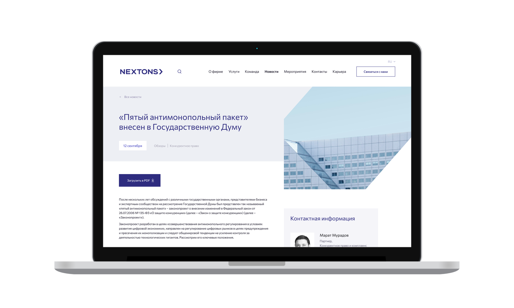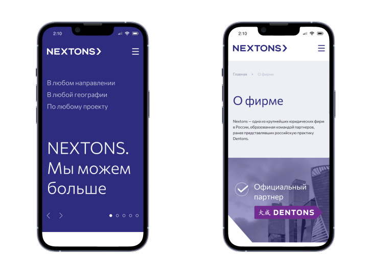 Nextons активно занимается проведением мероприятий, постоянно публикует статьи, новости и обзоры, поэтому необходимо было совместить корпоративный сайт, который повествует о компании, со структурой новостного сайта.