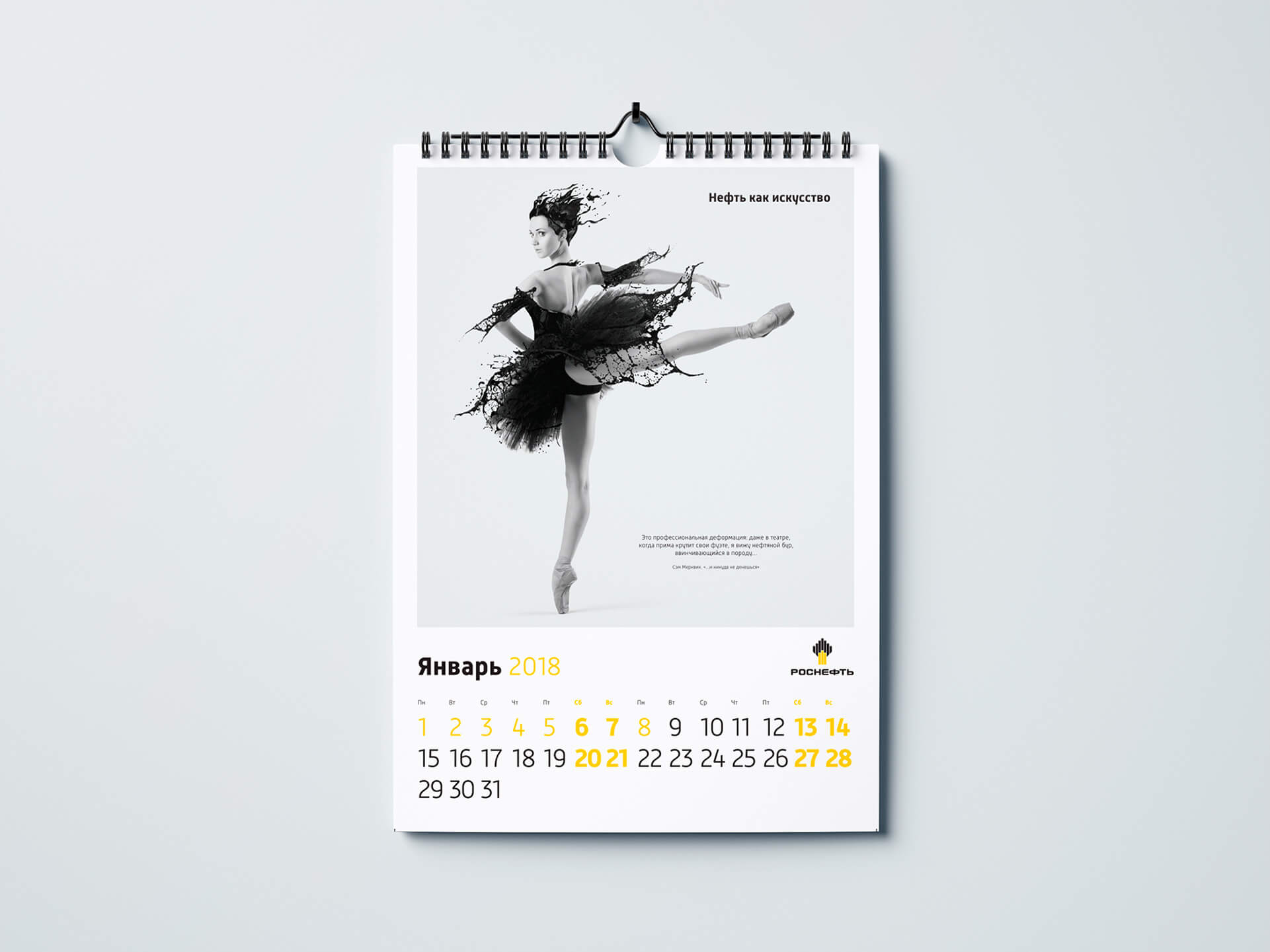 ПАО «НК «РОСНЕФТЬ» каждый год старается удивить своих партнеров и клиентов нестандартным календарем, который не просто будет нести в себе брендинг, но и не наскучит в течение 12 месяцев, а также станет прекрасным украшением интерьера.