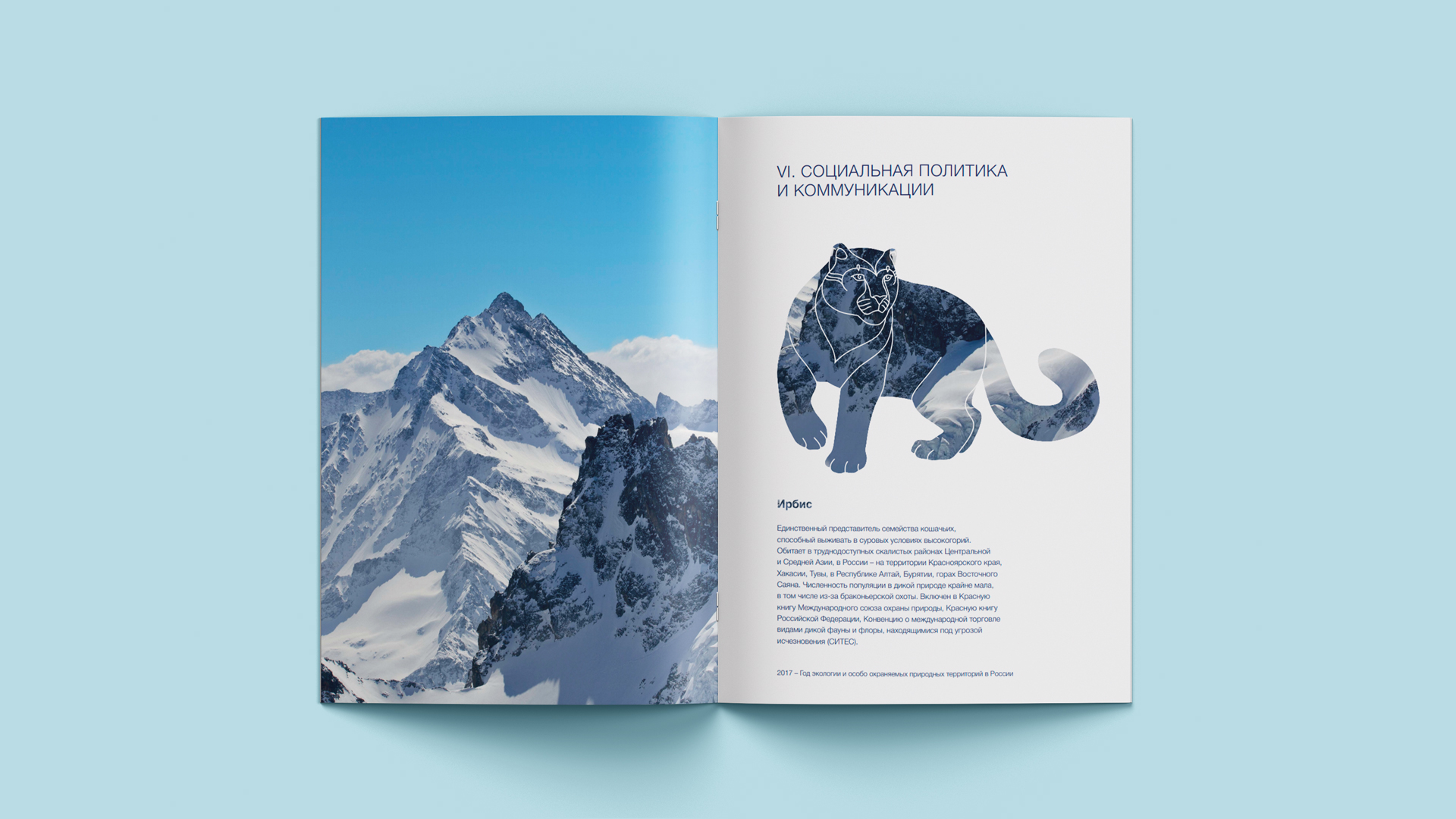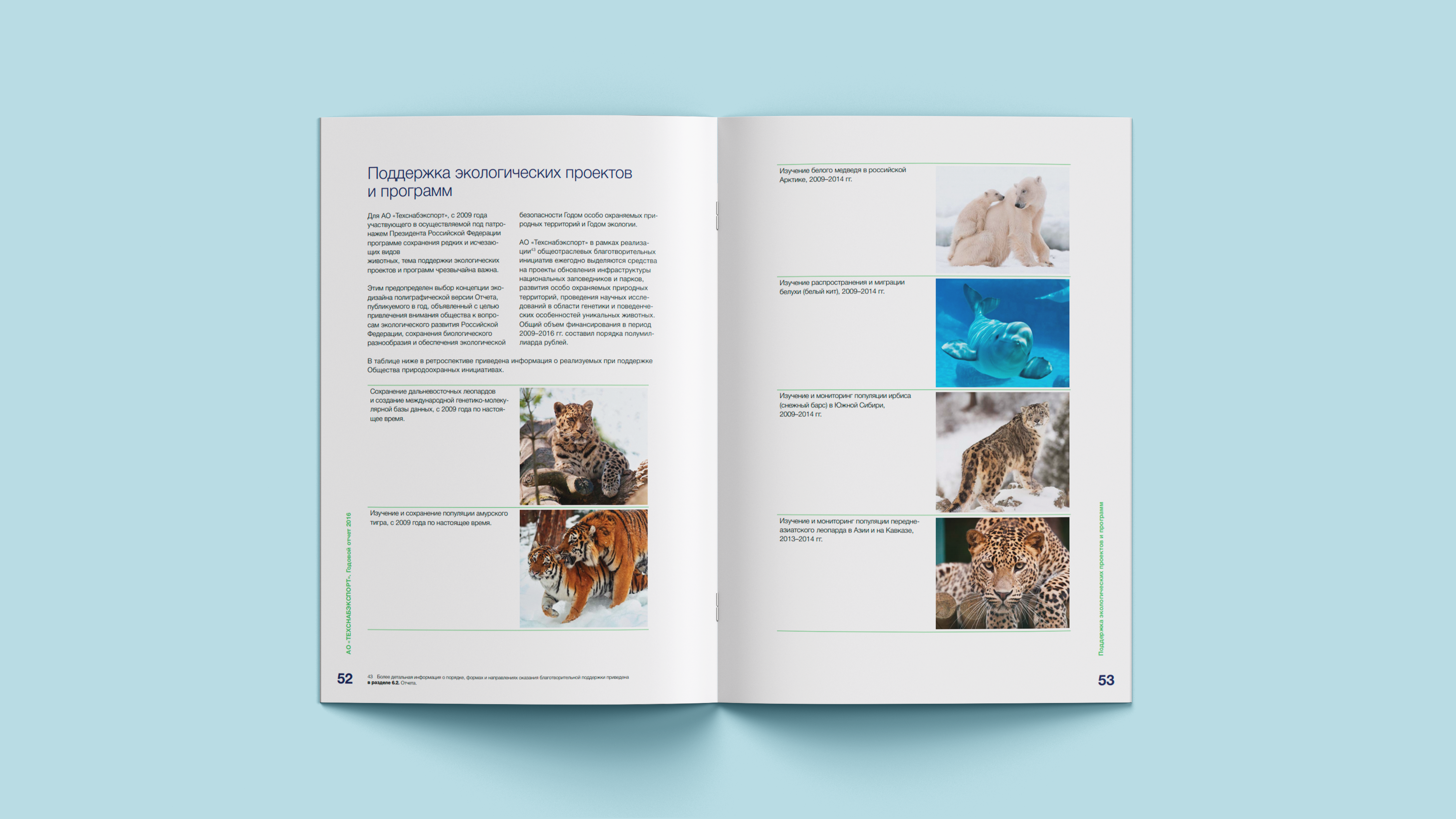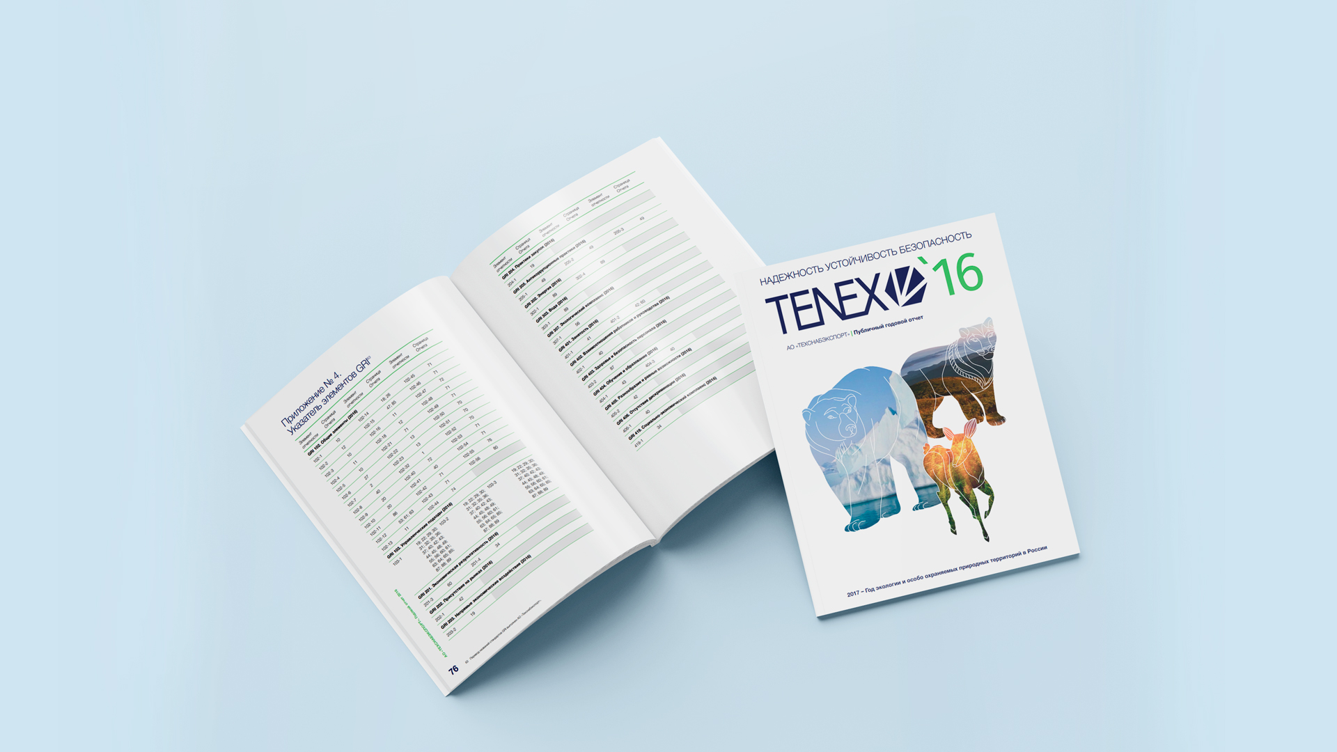 Флора и фауна – то, чем является природа – отображаются на страницах отчета. Природные ландшафты украшают каждый шмуцтитул, а образы животных создают ассоциативный ряд, связанный с темой раздела. Надежность, устойчивость и безопасность – доминантные качества компании – отражаются в характерах животных.