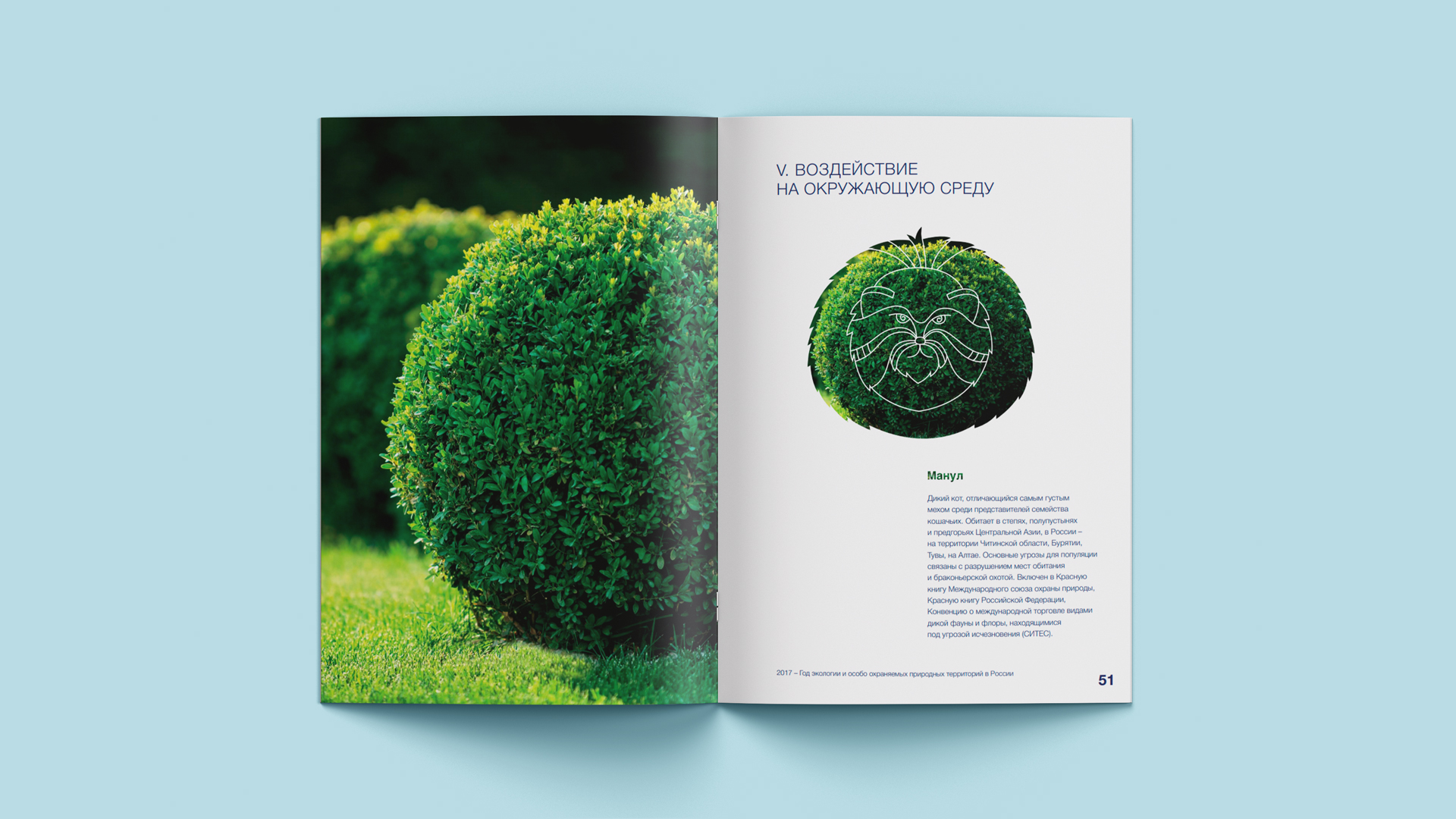 В качестве знаковых символов для разделов были разработаны оригинальные иллюстрации с животными, символизирующими соответствующую тематику. Это решение не в последнюю очередь было обусловлено тем, что 2017 год был объявлен Годом экологии и особо охраняемых территорий в России.