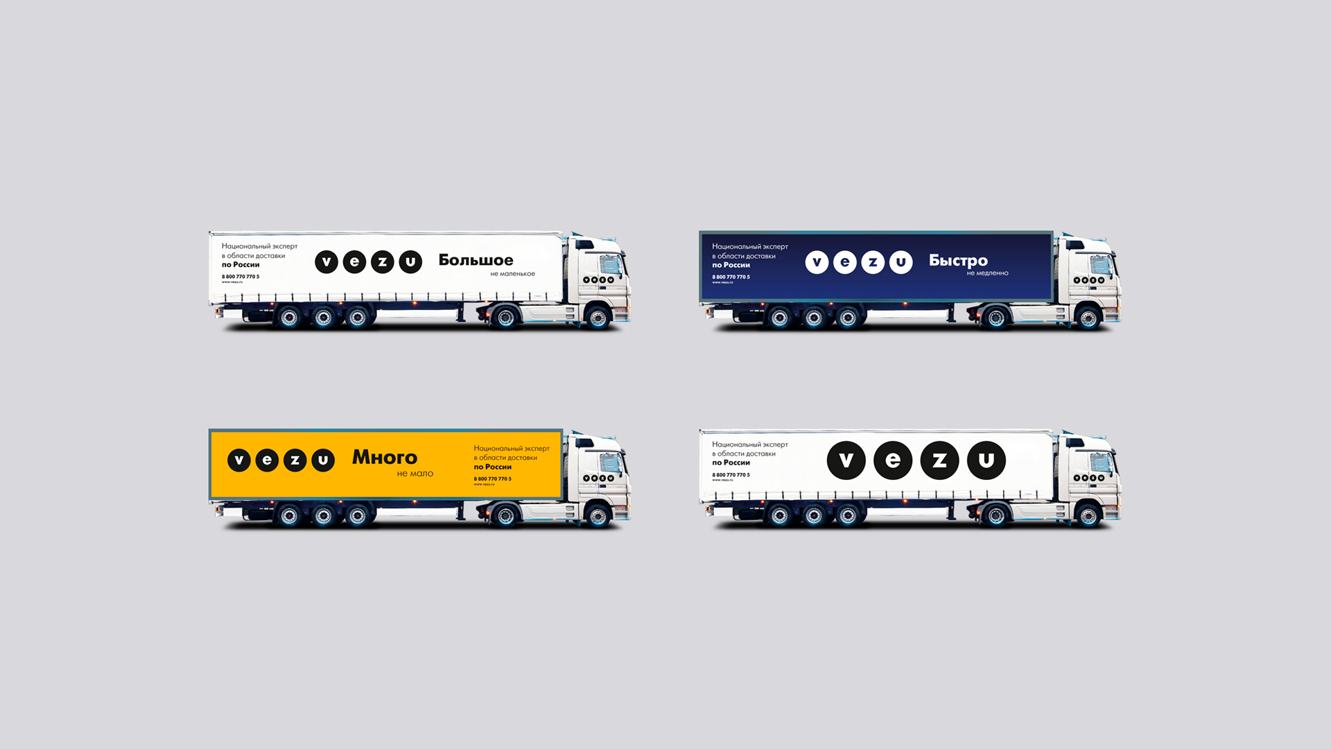 Четыре колеса как опора и поддержка сотрудничества. Необходимо было подчеркнуть статус компании как федерального перевозчика. Наиболее подходящим для этого стало использование латиницы в написании логотипа. Легко масштабируемый, простой в прочтении, модульный, современный, оптимизированный для цифрового и физического пространства.